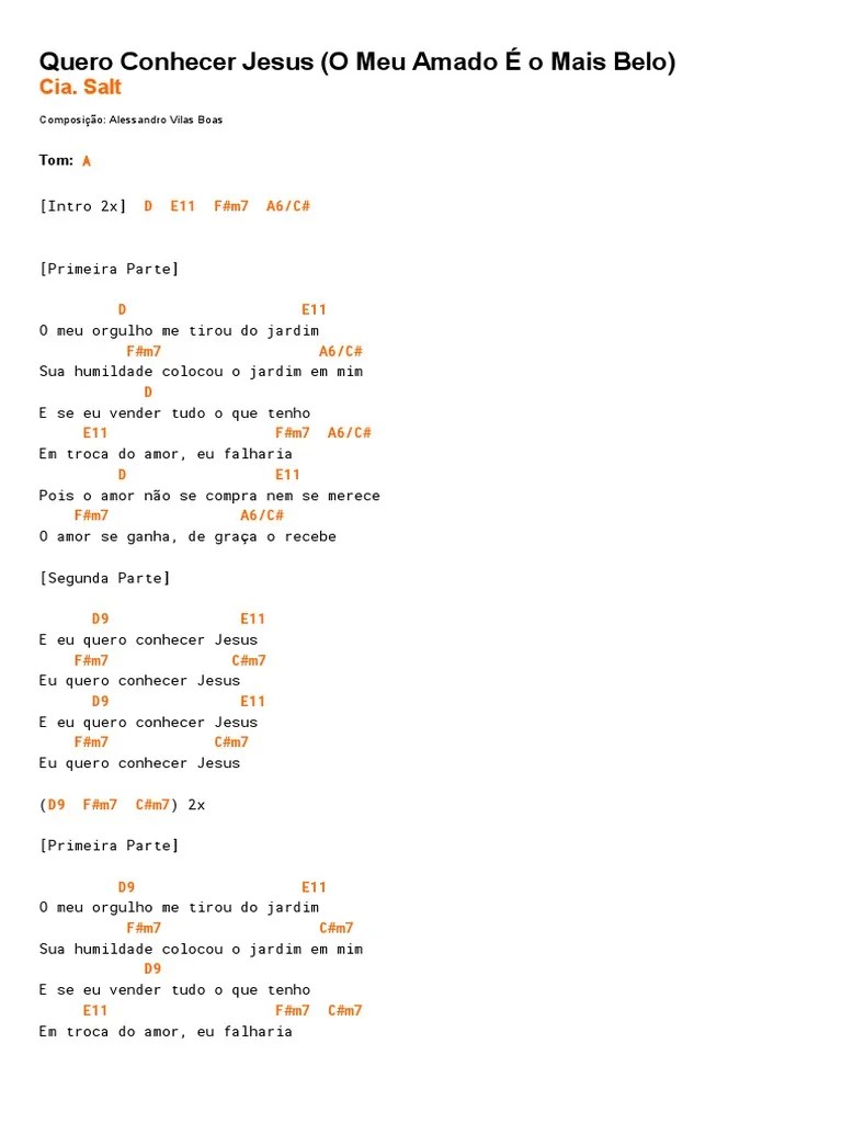 Aprenda a tocar a cifra de quero conhecer jesus (o meu amado é o mais belo) (cia. Tua humildade colocou o jardim em mim. Em troca do amor, eu falharia. Salt quero conhecer jesus mp3 postado por louvores em 08/11/2017, e que já está com 139.623 . Encontre esse pin e muitos outros na pasta gospel de geisiane hermano.